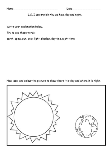 In this science worksheet, your child learns about the earth's rotation and how the sun shines on the planet, . There is no change in the temperature from day to night for the seventh planet in the solar system. Day and night on earth are caused by the planet's rotation around its axis and its position relative to the sun. Browse day and night worksheets resources on teachers pay teachers,. Use this set of printable worksheets to encourage students to think about the differences between night and day.